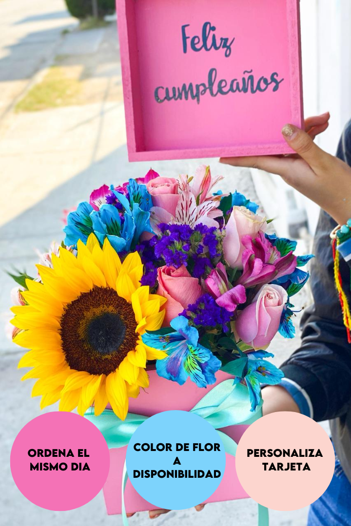 Regala alegría y color con esta hermosa caja floral artesanal, perfecta para sorprender en cualquier ocasión. Cada detalle está diseñado para transmitir emociones con flores frescas y vibrantes.