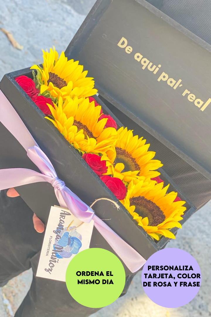 Nuestra Caja con Girasoles y Rosas está pensada para robar sonrisas y transmitir emociones sinceras en cada detalle.