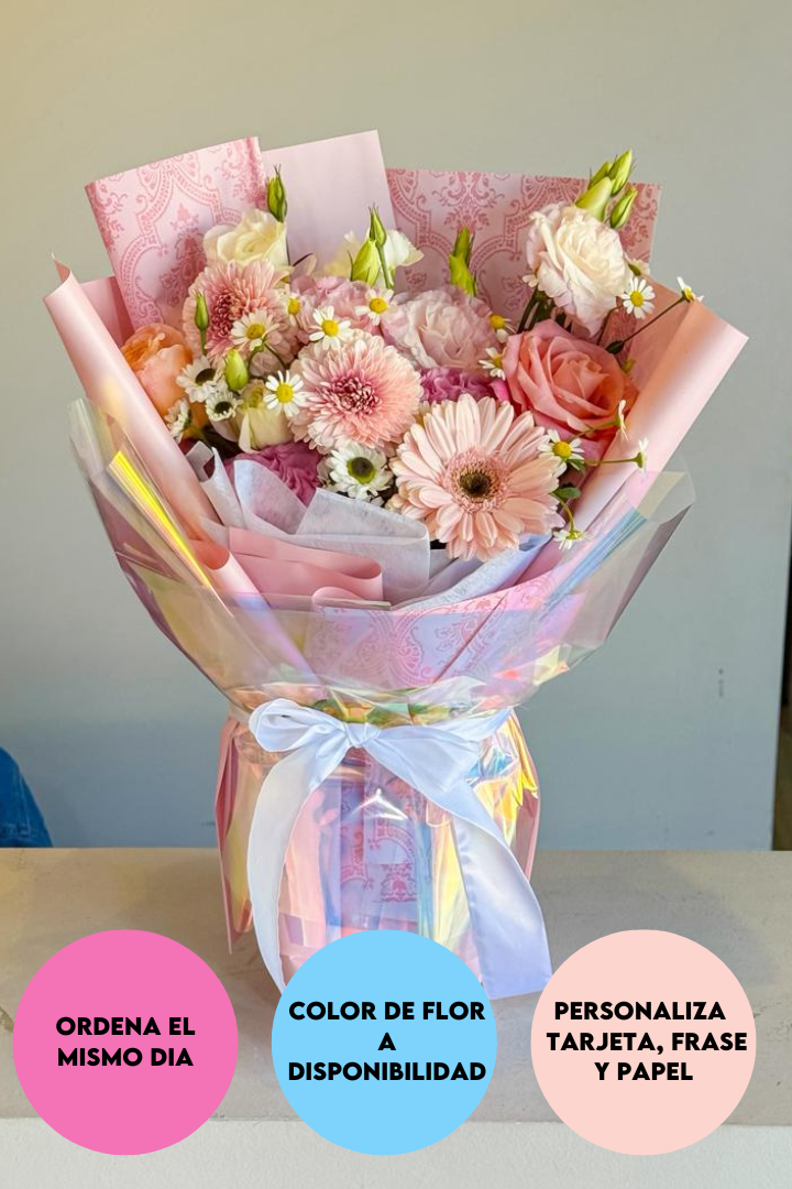 Sorprende a alguien especial con este encantador ramo de flores mixtas, cuidadosamente diseñado para transmitir alegría, cariño y frescura.
