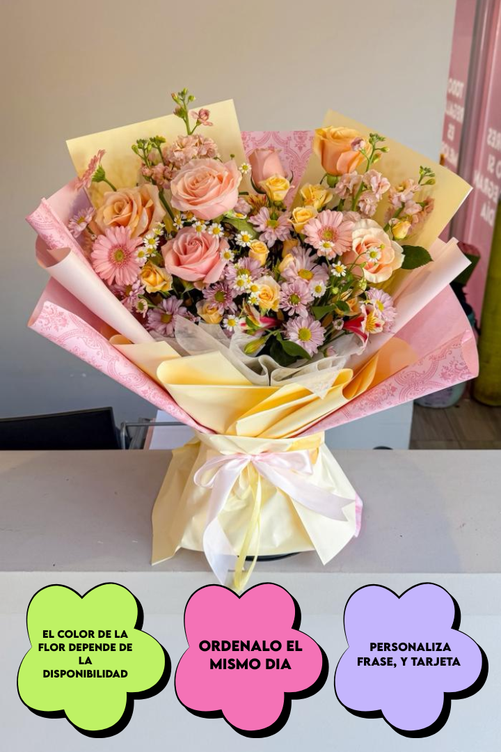 Un ramo vibrante, lleno de color y estilo 💖, perfecto para sorprender en cualquier ocasión especial.